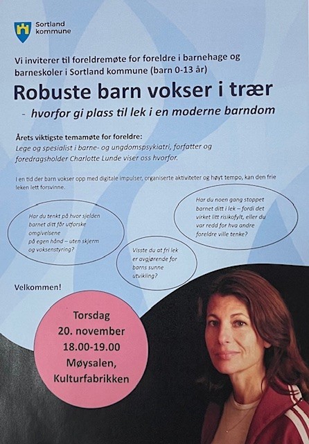 Årets viktigste temamøte: Robuste barn vokser i trær - hvorfor gi plass til lek i en moderne barndom, foredragsholder Charlotte Lunde